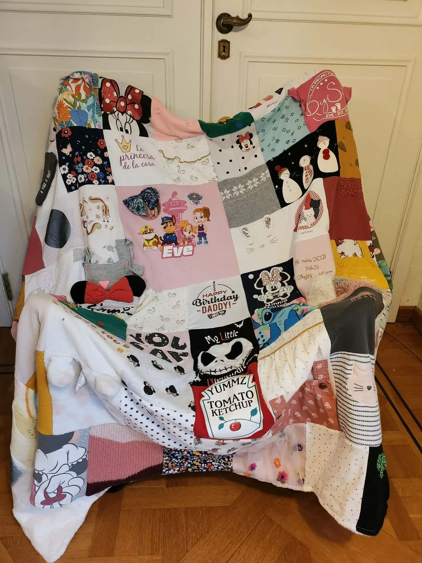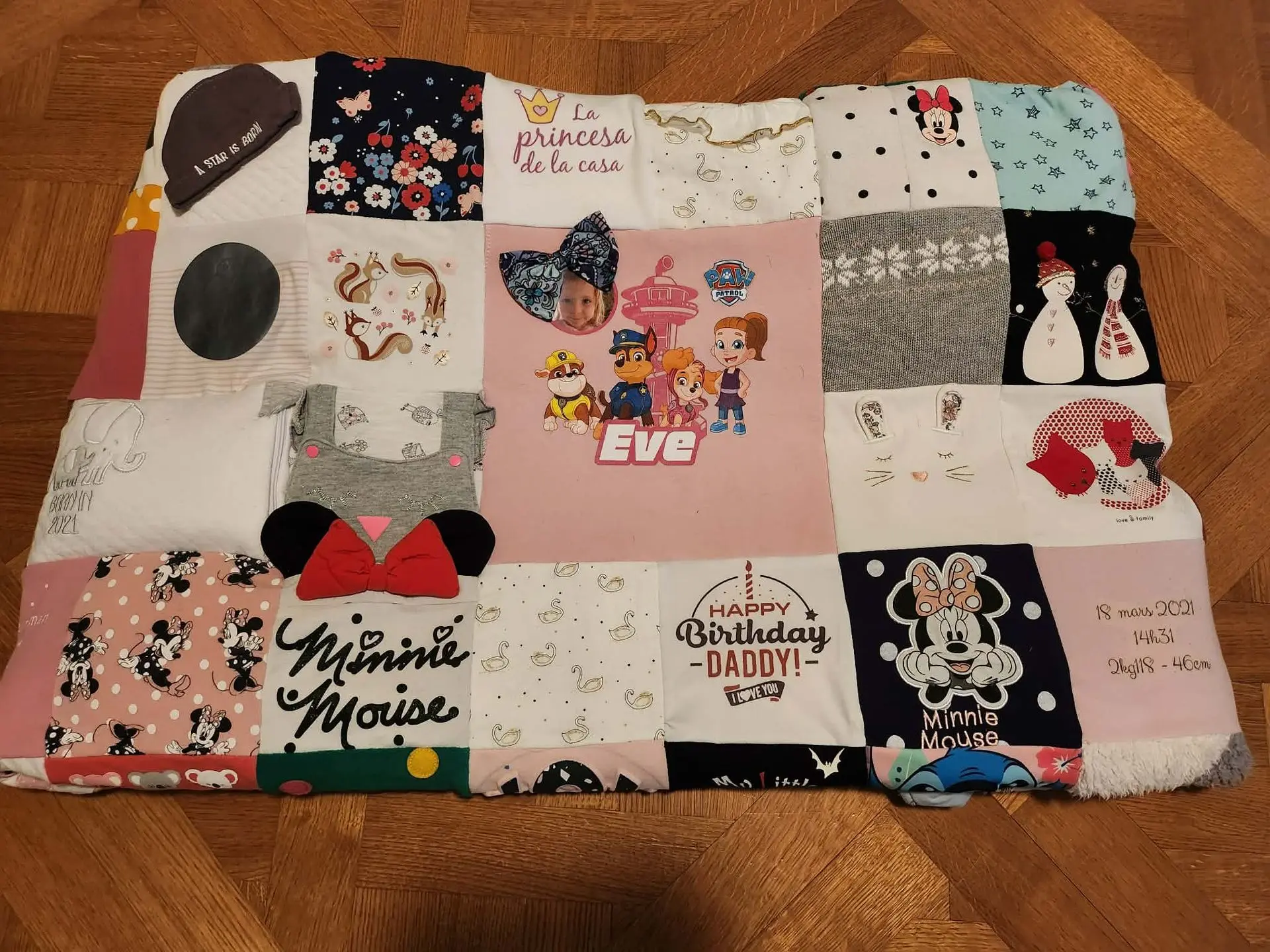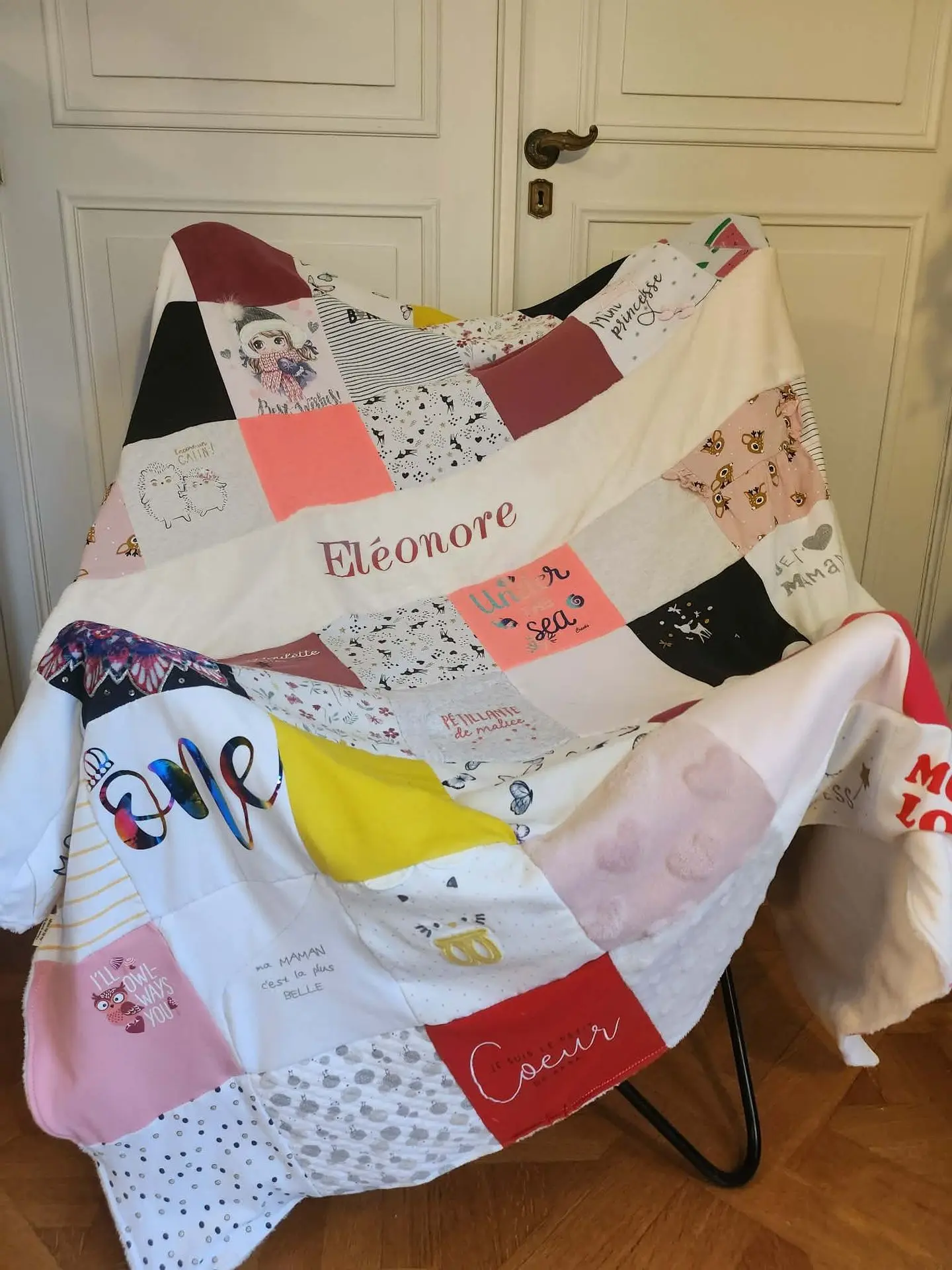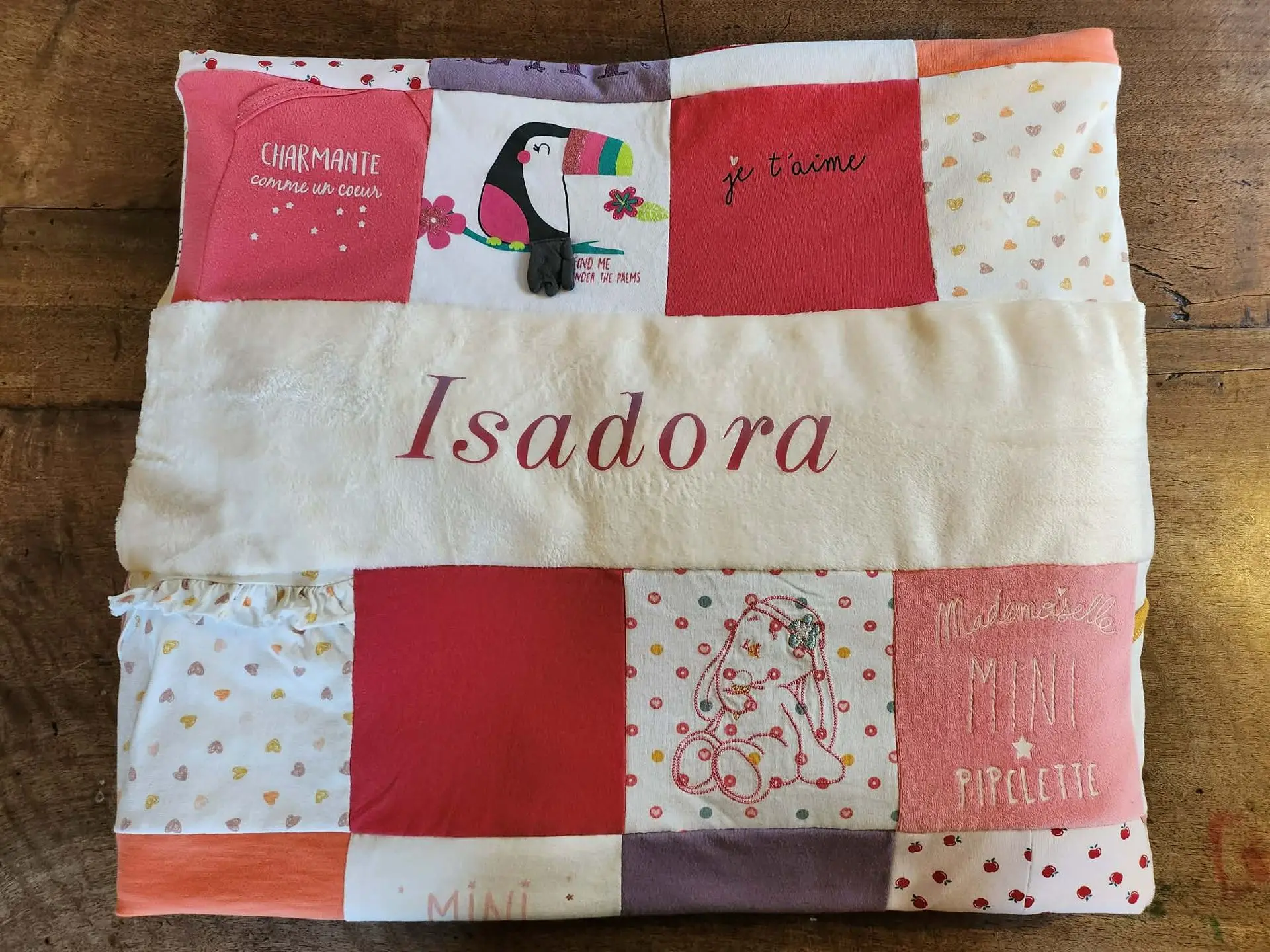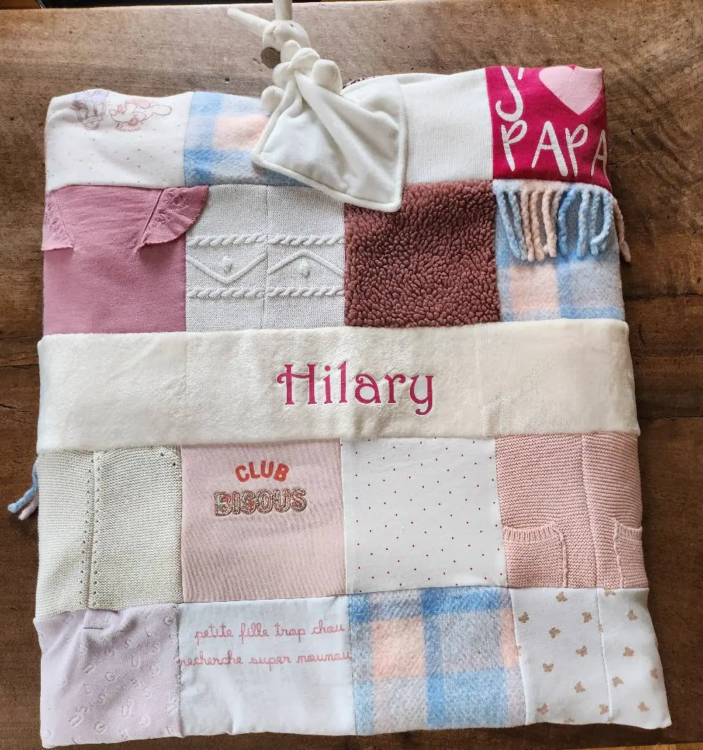 Un cadeau qui a marqué les esprits pour le premier anniversaire de ma filleule. Encore un grand merci pour votre réalisation, les détails dans la peluche, on a adoré ! C’est vraiment un très beau souvenir de ses premiers vêtements.